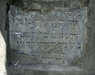 Recovered from a walkway behind the house at vul. Adama Mitskevycha 8 in downtown Dobromyl in March 2016, then installed in a newly-constructed Wall of Memory at the Dobromyl Jewish cemetery in May and June 2016; see the web page About Dobromyl for more information.
