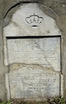 Recovered from a walkway behind the house at vul. Adama Mitskevycha 8 in downtown Dobromyl in March 2016, then installed in a newly-constructed Wall of Memory at the Dobromyl Jewish cemetery in May and June 2016; see the web page About Dobromyl for more information.