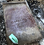 This headstone and more than a hundred others were recovered from under the asphalt paving of vul. Hanna Barvinok southwest of the Lviv city center over several days in June 2018, in a volunteer event organized by the Sholem Aleichem Jewish Cultural Society of Lviv and the Lviv Volunteer Center. The stones were then moved to the new Jewish cemetery adjacent to the Yanivskyi Cemetery northwest of the city center, from which they were likely originally stolen during the German occupation of World War II.