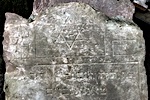 the stone is broken around the edges and corners but most of the epitaph is preserved and legible