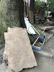 This headstone and more than a hundred others were recovered from under the asphalt paving of vul. Hanna Barvinok southwest of the Lviv city center over several days in June 2018, in a volunteer event organized by the Sholem Aleichem Jewish Cultural Society of Lviv and the Lviv Volunteer Center. The stones were then moved to the new Jewish cemetery adjacent to the Yanivskyi Cemetery northwest of the city center, from which they were likely originally stolen during the German occupation of World War II.