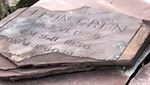 only a fragment of this stone survives; nearly all of the Hebrew epitaph is lost