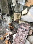 This headstone and several others were discovered in a retaining wall behind a house at vul. Konotopska 4, southwest of the Lviv city center. During February 2020, a small volunteer event was organized by the Sholem Aleichem Jewish Cultural Society of Lviv and the Lviv Volunteer Center to recover the stones, which were then moved to the new Jewish cemetery adjacent to the Yanivskyi Cemetery northwest of the city center, from which they were likely originally stolen during the German occupation of World War II.