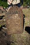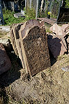 This headstone and more than a hundred others were recovered from under the asphalt paving of vul. Hanna Barvinok southwest of the Lviv city center over several days in June 2018, in a volunteer event organized by the Sholem Aleichem Jewish Cultural Society of Lviv and the Lviv Volunteer Center. The stones were then moved to the new Jewish cemetery adjacent to the Yanivskyi Cemetery northwest of the city center, from which they were likely originally stolen during the German occupation of World War II.