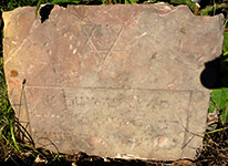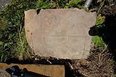the lower portion of the headstone is broken and lost; the face is damaged and part of the epitaph is obliterated