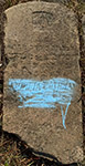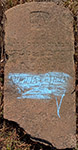 the stone is rough and the face is very worn but parts of the epitaph are legible