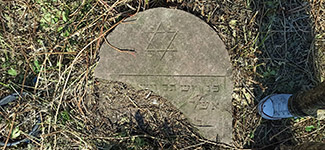 This headstone and more than a hundred others were recovered from under the asphalt paving of vul. Hanna Barvinok southwest of the Lviv city center over several days in June 2018, in a volunteer event organized by the Sholem Aleichem Jewish Cultural Society of Lviv and the Lviv Volunteer Center. The stones were then moved to the new Jewish cemetery adjacent to the Yanivskyi Cemetery northwest of the city center, from which they were likely originally stolen during the German occupation of World War II.
