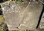 this stone was intact but cracked when recovered; it broke into four large fragments during transport to the cemetery; the four fragments are recorded here separately with the complete surviving inscription in case the fragments become separated in the future