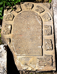 the stone is in good condition although slightly broken with a piece missing at the lower left corner; almost the entire epitaph survives