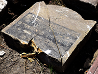 This is one of three fragments of a single stone found together when excavated at the former prison yard. The epitaph information documented here is for all fragments together. To review each fragment individually, see the stone group ID 300.
