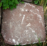 This is one of two surviving fragments of a single stone found separately when excavated at the former prison yard; this piece is the front part of the stone, which has split in plane from the rear part. The epitaph information documented here is for both fragments together. To review each fragment individually, see the stone group ID 369.