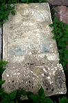 although soiled, this stone is intact and in good condition, with traces of blue or black paint in the field of the epitaph