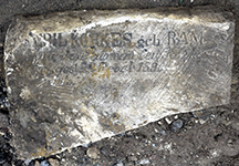 This headstone and hundreds of others were excavated in early July 2020 from under the soil surface of an enclosed yard of the