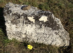 The stone is in very poor condition, broken and crumbling, with only parts of two or three lines of the epitaph remaining, and only a few letters are legible.