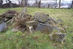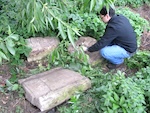 The stone was one of several found on the east bank of the Hnyla Lypa River, just north of the Zavoda bridge near vul. Kudryka, and reported by Mykhailo Vorobets on 13May2011. Mr. Vorobets later arranged to have the stone moved to the new Jewish cemetery and then to the old Jewish cemetery in spring 2015.