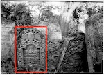 The headstone image seen here is an excerpt from six interwar photographs of Rohatyn’s old Jewish cemetery, as seen in a collection preserved at the Andrey Sheptytsky National Museum in Lviv, used here by the courtesy of Dr. Sergey Kravtsov and with permission of the Museum. All of the stones in these photographs were stolen from the old cemetery for use in road construction during the German occupation of Rohatyn in WWII; to date none have been recovered, and all remain missing.
