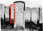 The headstone image seen here is an excerpt from what is believed to be a prewar photograph of Rohatyn’s old Jewish cemetery, from a collection created by Tomasz Wiśniewski, used here by permission granted to Rohatyn Jewish Heritage. All of the stones in these photographs were stolen from the old cemetery for use in road construction during the German occupation of Rohatyn in WWII; to date none have been recovered, and all remain missing.