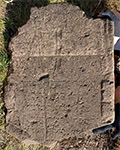 надгробок розбитий по всіх краях, а частина епітафії відсутня; лицьова сторона каменю дуже пошкоджена, так що значна частина епітафії не читається