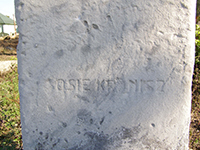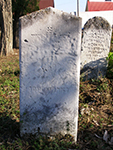 у вертикальному положенні, цілий, сильна ерозія каменю, пошкодженні символи та епітафія