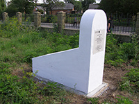 This marker was erected in 2019 in the Zbarazh new Jewish cemetery by the Hasidic organizations Agudas Ohalei Tzadikkim and Geder Avos to commemorate three revered men who were buried in the Zbarazh old Jewish cemetery, whose grave sites were lost when the old cemetery was destroyed during World War II and the post-war Soviet era. See ZBN185 and ZBN186 for the other names.